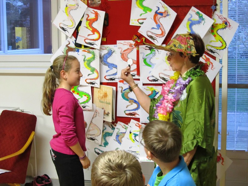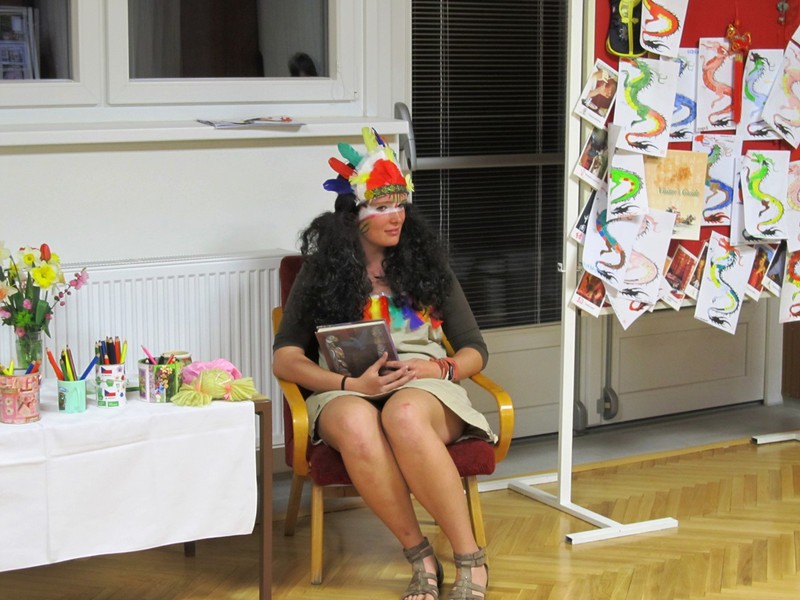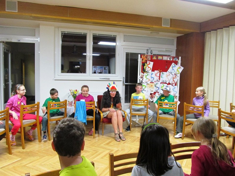 Vydali jsme se s kouzelnou babičkou Zojou a Maruškou do světa za pohádkou. Nejprve nás navštívil sám pan Andersen z Dánska, přiblížil nám svůj život a dobu, ve které žil a tvořil. Pak jsme se vypravili do tajemné Číny. Přivítala nás čínským pozdravem paní Bilíková, seznámila se zvyky kraje a děti soutěžily o nejpěkněji vykresleného draka. S pohádkami dalekého Orientu přitančily děti z Babic u Šternberka. Pak se objevila velká indiánka Paja a děti si zahrály několik indiánských her a vyrobily indiánská trička. Najednou se do sálu přiřítila čarodějnice a všechny děti vyzvala, aby ji následovaly do tajemné noci, kde je čeká překvapení. V areálu Na Mýtince jsme kolem ohně uviděli postavičky našich pohádek – čerta a vodníka. Společně s místními myslivci nám připravili buřty a dobrý čajíček. Ale večer ještě nekončil. V nově připravovaném muzeu nás čekalo kouzelnické číslo pana Tomáše Šulaje, herce Slováckého divadla. A pak cesta zpět do knihovny, uložení do spacáků a čtení kouzelníka na dobrou noc.