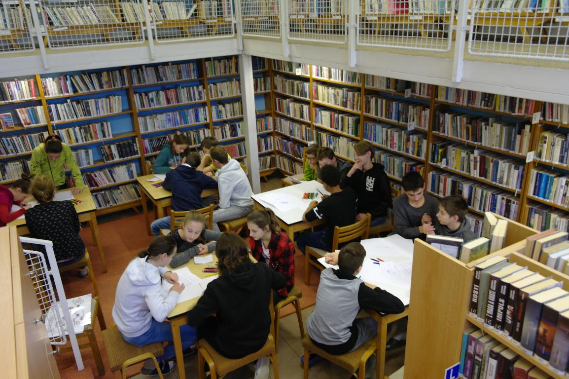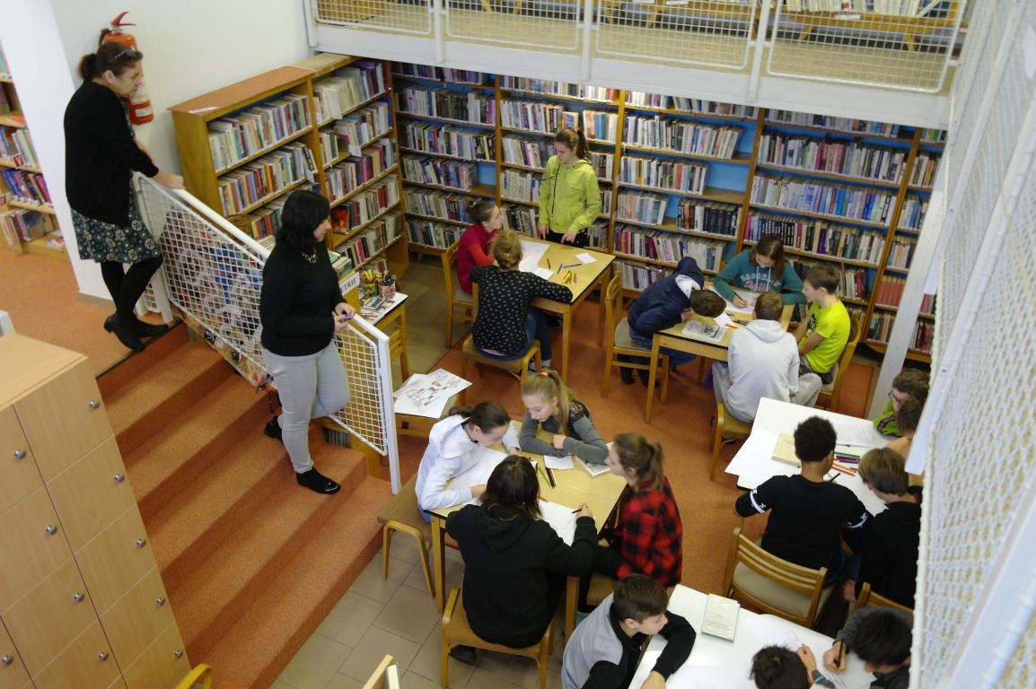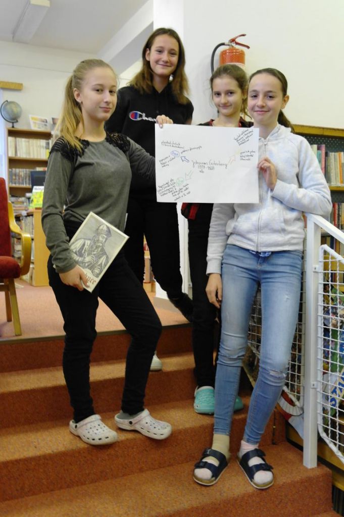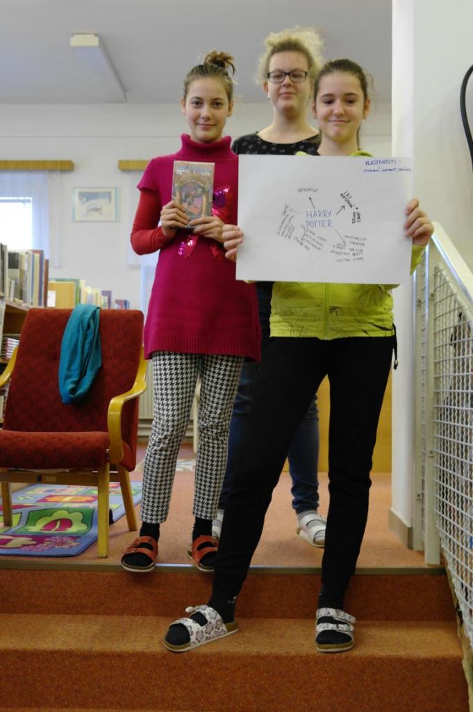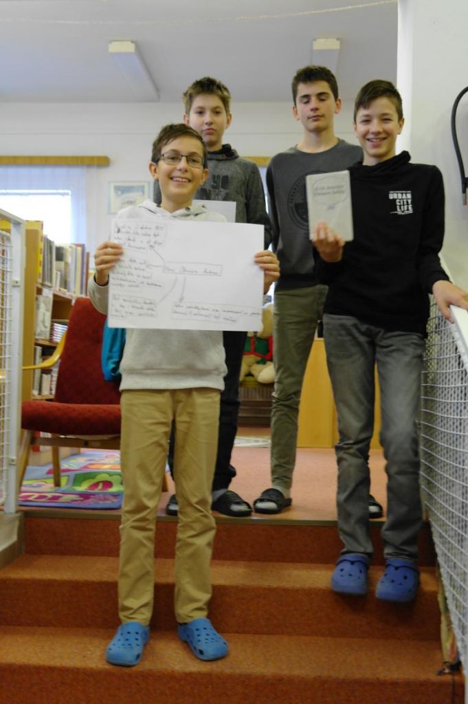 I sedmáci si mohli vyzkoušet tvorbu myšlenkových map. Hledali nejprve v knižním fondu určité knihy, které se jim staly nápovědou nějaké osobnosti. O ní pak tvořili myšlenkovou mapu. Jednalo se mimo jiné i o osobnosti, které jsou nebo budou součástí jejich výuky. Na práci dětí se přišla podívat i paní starostka.