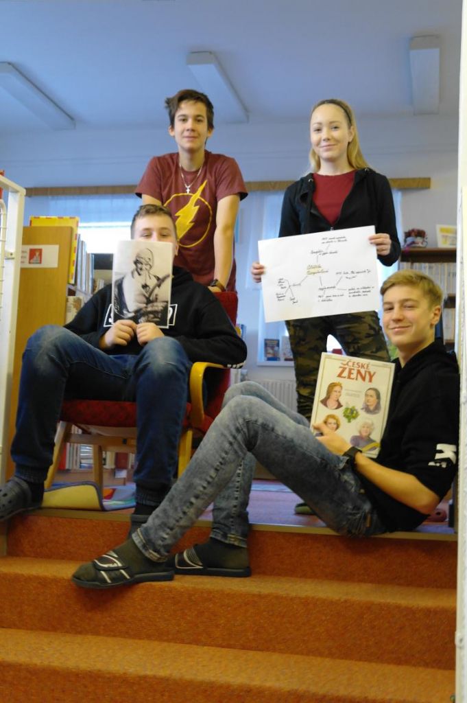 Deváťáci měli besedu zaměřenou na tvorbu myšlenkových map poněkud ztíženou. Jejich úkolem bylo hledat i v online katalogu, následně v knižním fondu, aby získali indicii, tedy knihu o nějaké známé literární či jiné osobnosti, jako např. E. M. Remarque, E. A. Poe nebo T. G. Masaryk. Tvorba myšlenkové mapy pak záležela na kreativitě členů týmu. Všichni se svého úkolu zhostili na jedničku.