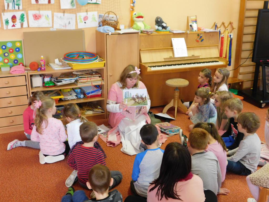 Protože březen je měsíc čtenářů, zaměřili se v MŠ na intenzivní práci s knihami. Paní knihovnice si proto došla za dětmi znovu popovídat o oblíbených pohádkových postavičkách a přečetla dětem několik pohádek ze zlatého fondu naší literatury.