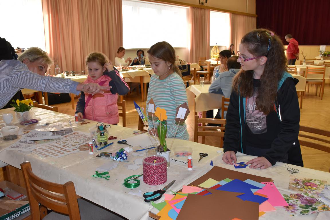 Klub tvořivých rukou při místní knihovně pořádal první letošní akci – jarní odpoledne s jarmarkem a tvořením. Pozvání přijali řemeslníci z regionu, kteří se zabývají výrobou keramiky, drátkováním, pečením perníčků, pletením pomlázek, košíků, drátkováním kraslic, výrobou figurek z kukuřičného šustí, šitím hraček a jiných textilních výrobků. Mnozí z nich nabídli dětem možnost vyzkoušet si výrobu jejich zboží a doplnili tak tvořivé dílničky našeho klubu, kde jsme ubrouskovou technikou zdobili kraslice a květináčky a vyráběli jsme zápichy - ptačí budky. Nechyběl ani tradiční bufet s jarním pečivem a dobrou kávou a prodej jarních rostlin.