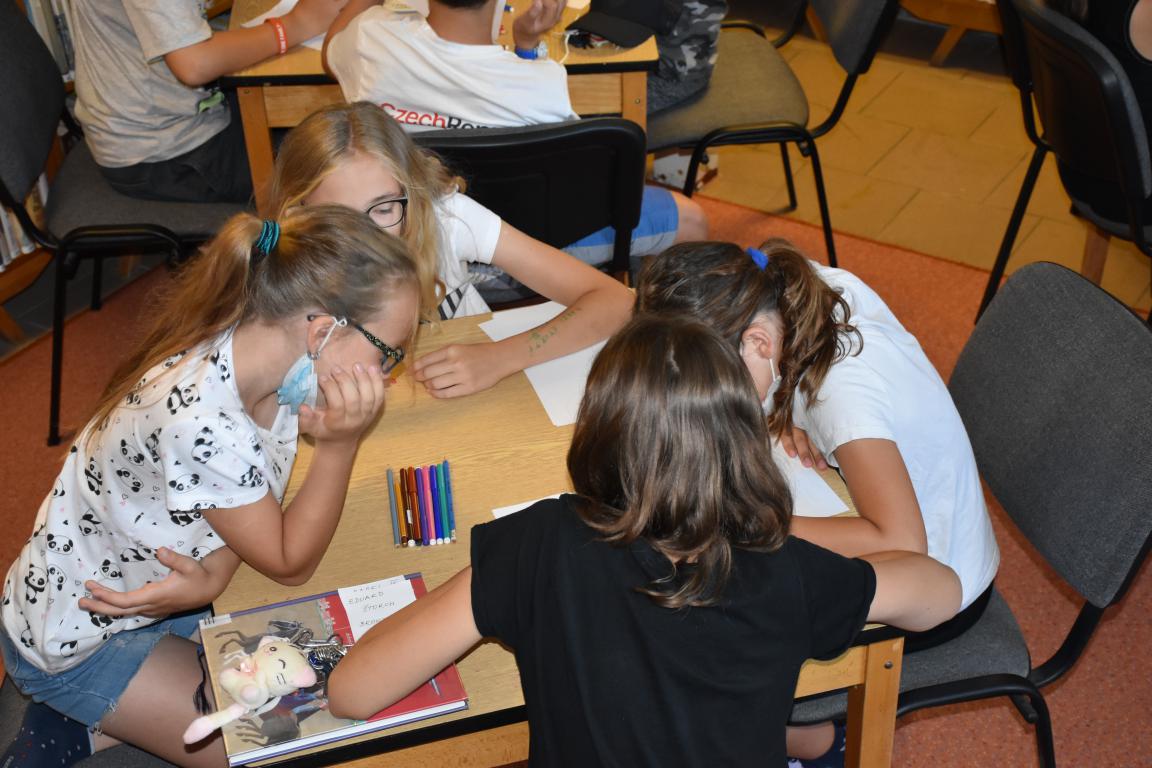 V pondělí dopoledne přišli páťáci, kteří si v knihovně zahráli "bojovku" s hledáním knih, indicií a tvorbou rozhovorů se slavnými osobnostmi, o kterých se letos učili.