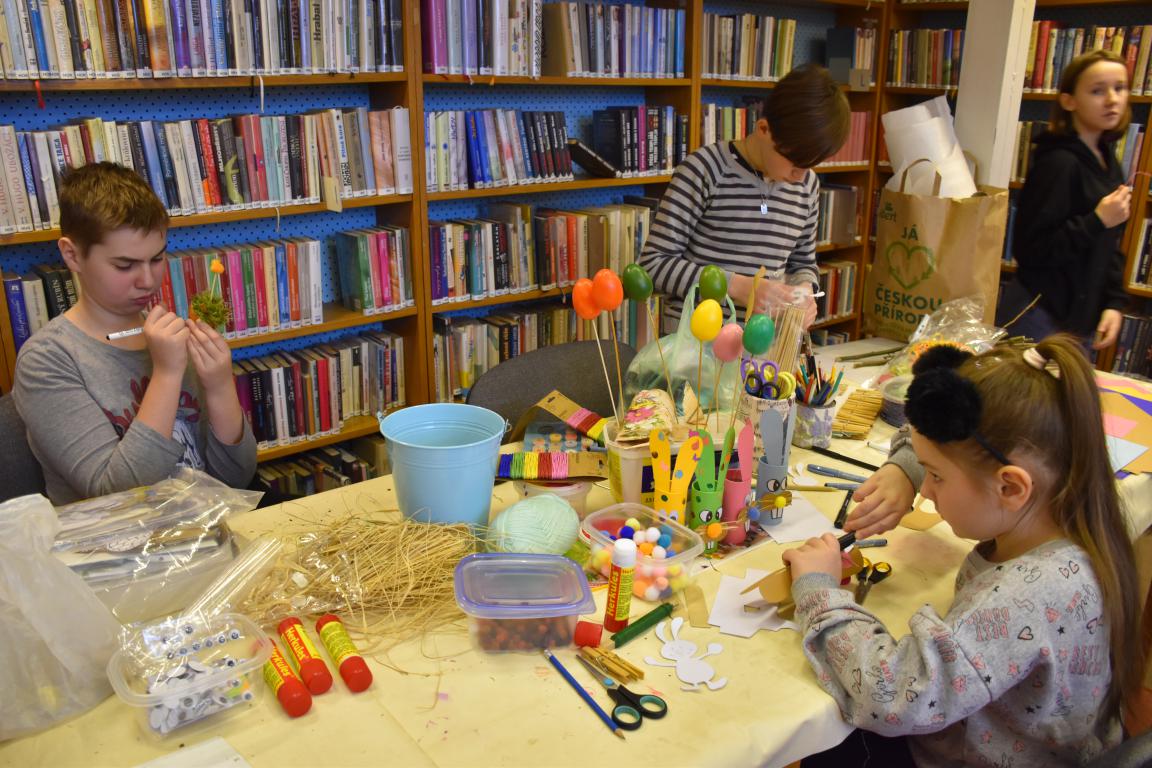 V pondělí jsme si vyráběli různé jarní dekorace, v úterý jsme hráli turnaj v pexesu, ve středu jsme se učili háčkovat, abychom mohli přispět do akce Na vlně Zlínského kraje. A nakonec ve čtvrtek knihovnická únikovka prověřila schopnosti dětí dostat se s pomocí nápovědy ze zamčené knihovny.