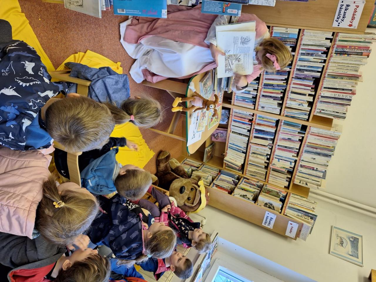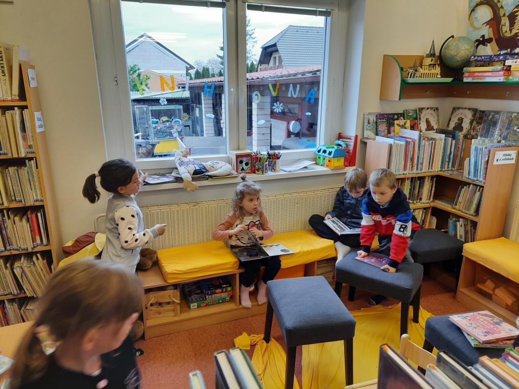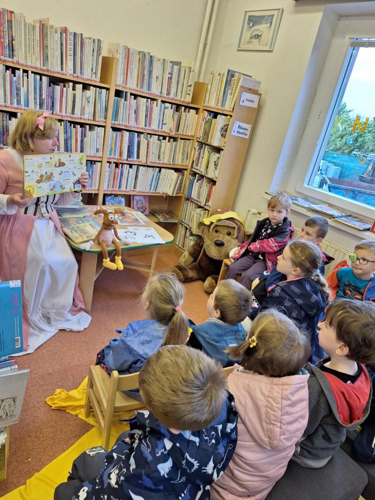 A protože už se probouzí příroda, povídali jsme si o broucích, a tedy o Ferdovi Mravencovi a jeho přátelích. Děti už tyto postavičky znají, a tak jsme si připomenuli, jak se vlastně všichni seznámili, a pak byl tématem Brouk Pytlík, věčný smolař, jehož kalamitu s motýly jsme si také přečetli. Povídali jsme si také o nových knihách, které jsou pro děti v knihovně připraveny.