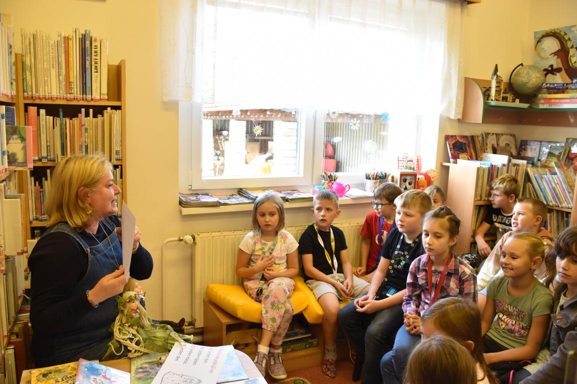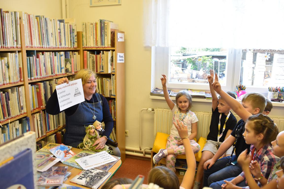 S těmi mladšími jsme si připomněli, jak to v knihovně funguje, s těmi staršími jsme se rovnou pustili do čtení z oblíbeného Jezevce Chrujdy či z Pettsona a Fiškuse, povídali jsme si o knihách z projektu Knížka pro prvňáčka a o novinkách, které jsou momentálně v knihovně. Závěrem každé besedy se děti mohly porozhlédnout po knihovně po tom, co by je zajímalo, a také si pohrát s našimi skřítky a vílami. O nich máme v knihovně různé příběhy, pexesa či omalovánky, které si děti mohly při odchodu vybrat.