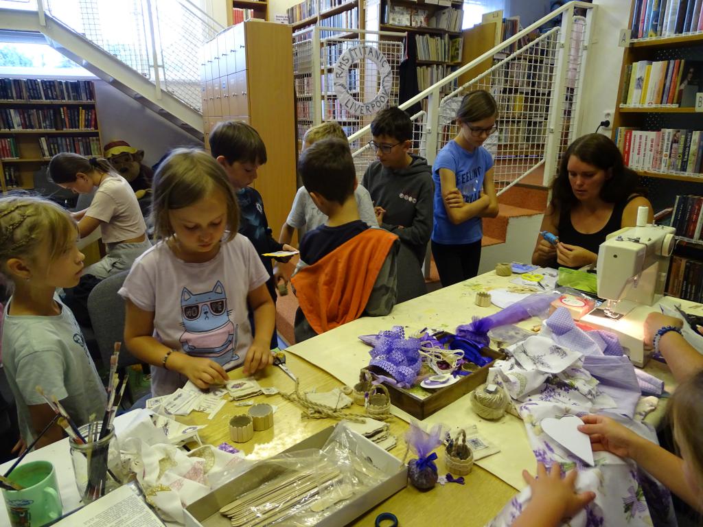 V létě se v knihovně nejen půjčovaly knihy, ale také celý červenec a kousek srpna fungovaly i levandulové dílničky.