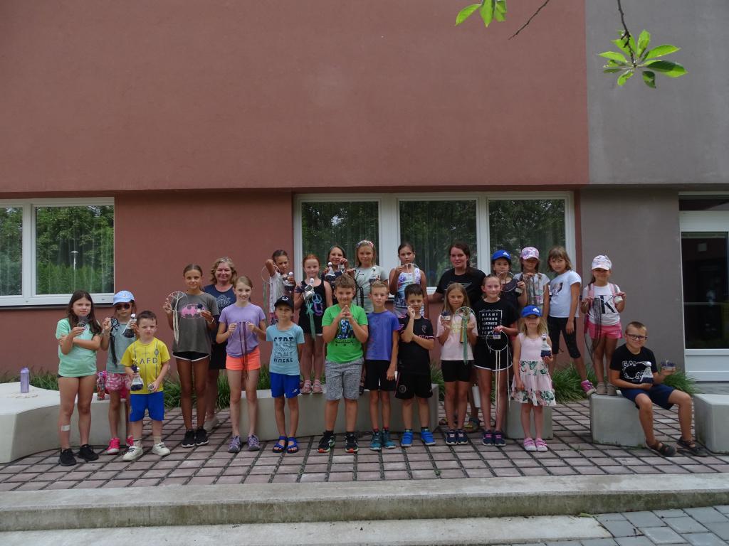 Oblíbené vedoucí Pája Procházková a Markéta Vávrová pro děti připravily na celý týden program, u kterého se děti rozhodně nenudily. Základna tábora byla v dílnách místní ZŠ, děti však tvořily i v přírodě, a ve středu pro ně bylo tvoření připraveno i v naší knihovně.